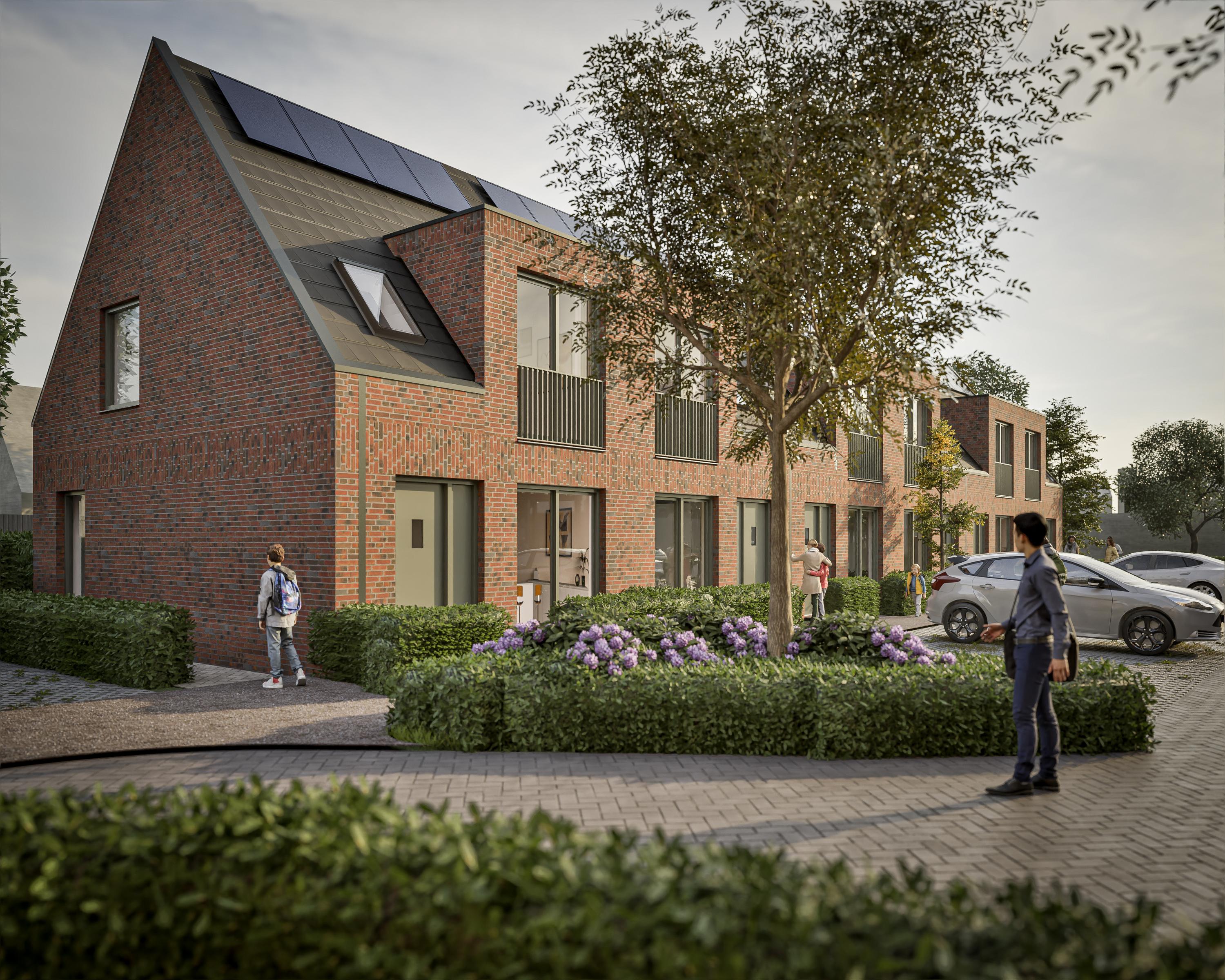 Grenzend aan het complex verrijzen daarnaast twee grondgebonden woningen, en aan het mandelige binnenhof komen nog eens zes rijwoningen. Hier komt nieuwbouw en herbouw samen in een passende architectuur.