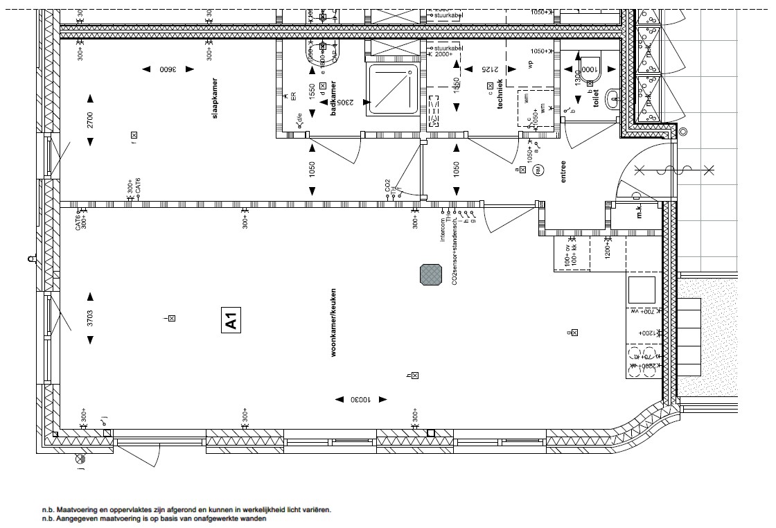 Via het centrale portaal stap je de hal van dit appartement in. De entree geeft toegang tot de ruime woonkamer met open keuken. De keuken is niet bij de prijs inbegrepen, zodat je zelf de vrijheid hebt om deze volledig naar wens samen te stellen. Het appartement is functioneel en ruim opgezet. De keuken heeft een praktische plek gekregen in de ruimte, zodat er voldoende ruimte overblijft voor een comfortabele eethoek en zithoek.