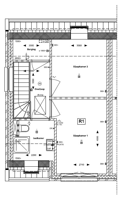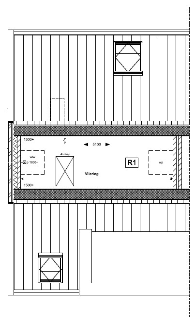 Op de eerste verdieping bevinden zich twee comfortabele slaapkamers van circa 11 m² en 9 m². De badkamer is modern ingericht en voorzien van een wastafel, douche en toilet. Op de overloop bevindt zich een praktische berging met ruimte voor de wasmachine en droger, handig en netjes uit het zicht. Via een vlizotrap is de vliering bereikbaar, die veel extra bergruimte biedt.